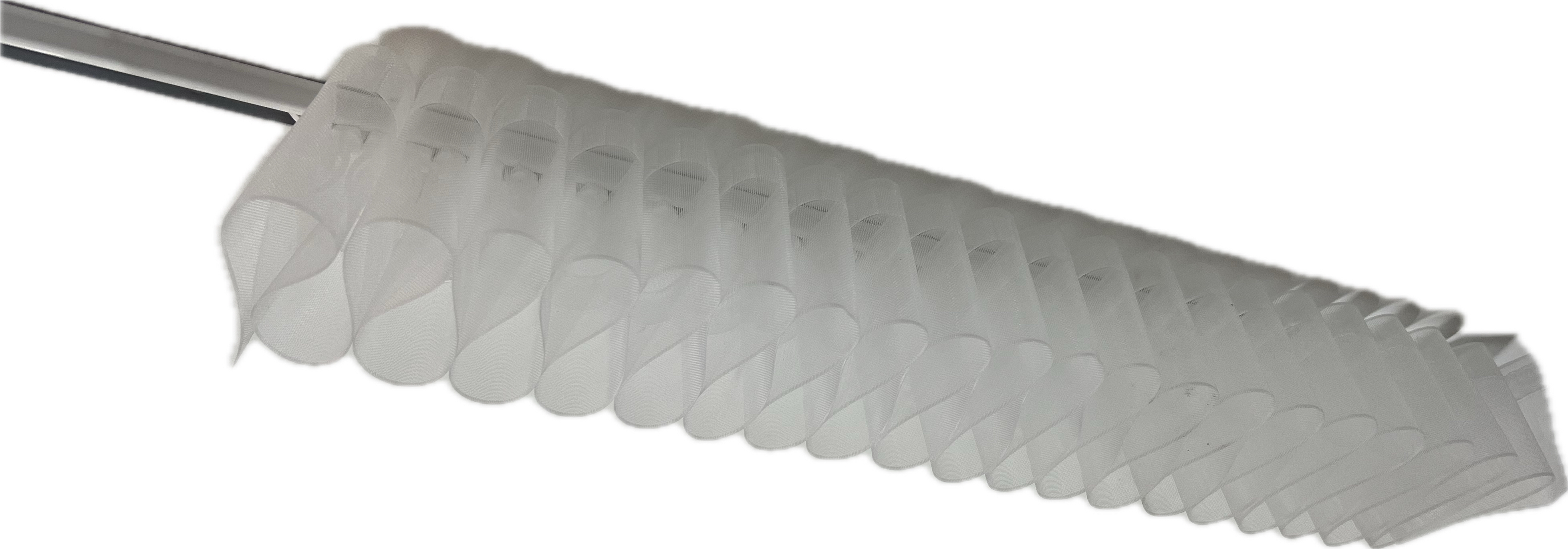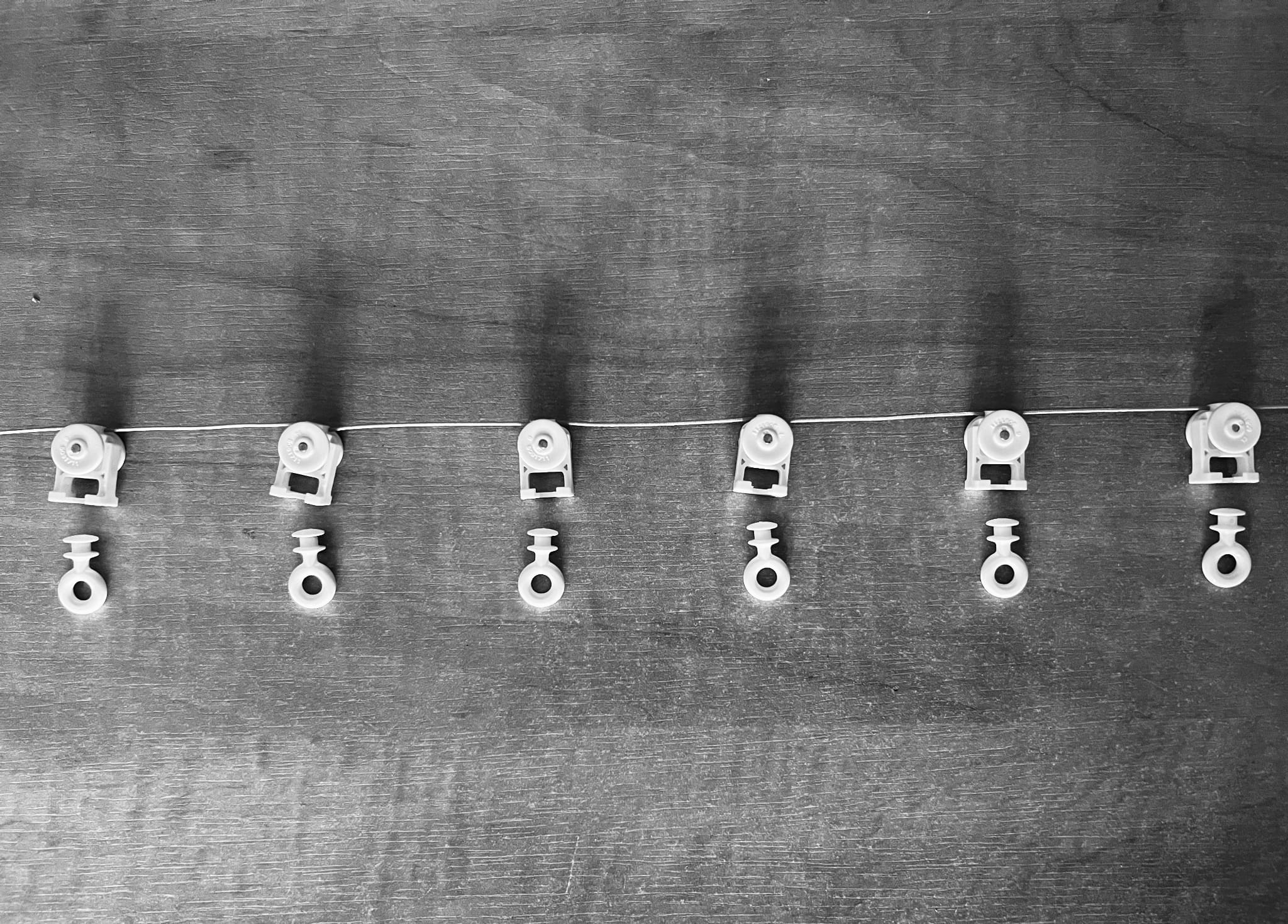 Specjalnie zaprojektowane ślizgacze są połączone ze sobą sznurkiem (rozstaw 8 cm). Dzięki połączeniu ślizgaczy sznurkiem firany lub zasłony zawsze będą układać się w formie fali.